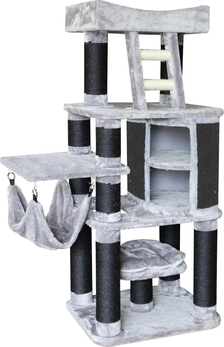 De Krabpaal Jesse van Adori is een grote krabpaal voor je kat (of katten) met een afmeting van 70 x 60 x 180 cm. Deze krabpaal bestaat uit meerdere krab-, klim-, speel- en slaapplekken zoals een huisje, trapje en hangmandje. Door de vele mogelijkheden is deze krabpaal zeer geschikt voor een huishouden met meerdere katten. De Luna is ook relatief hoog waardoor je kat goed zijn omgeving in de gaten kan houden vanaf het bovenste plateau. De krabpaal is grijs van kleur met zwart sisaltouw.