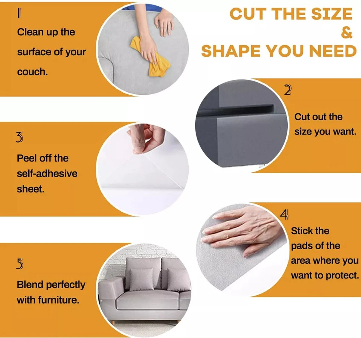 De anti krabvellen zijn eenvoudig aan te brengen en besparen u een hoop tijd. Stap 1 – Zorg ervoor dat u voor het gebruik de oppervlakte waarop u de vellen wilt aanbrengen schoonmaakt. Stap 2 -Knip de vellen op maat (optioneel). Stap 3 – Verwijder de beschermfolie en plak de vellen op het gewenste oppervlak. Uw meubels beschermen is nog nooit zo makkelijk geweest!