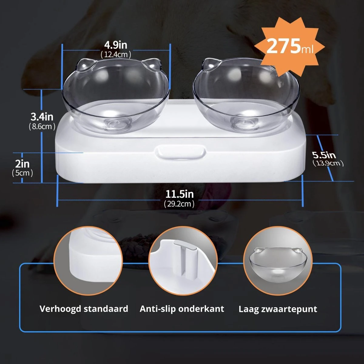 De dubbele katten voerbakken zijn gemaakt van hoogwaardig materiaal, wat milieuvriendelijk, duurzaam en veilig is voor je kat. Daarnaast zijn de transparante voer/drink bakjes vaatwasser bestendig.