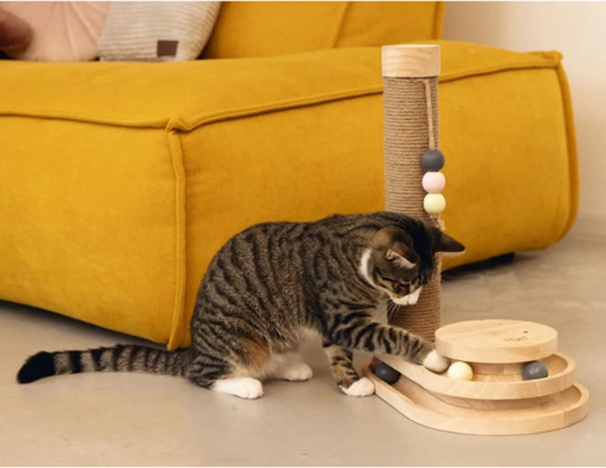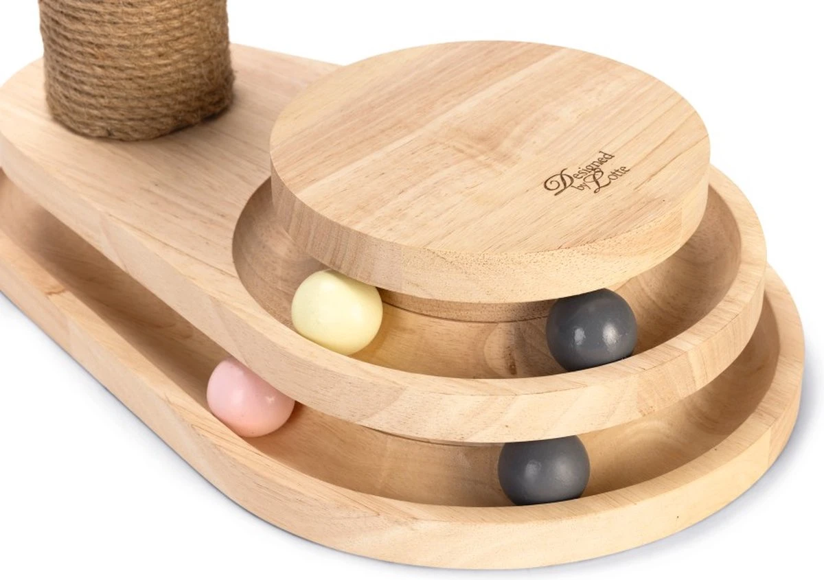 De krabpaal Inez is gemaakt van rubberhout en heeft een paal die omwikkeld is met jute touw. Dankzij het ontwerp is het perfect voor elk interieur. Naast de gebruikelijke krabpaal is er onderaan een leuke speeltoren bevestigd. De speeltoren is uitgerust met speelballen. Zodra je kat met zijn poot of snuit tegen de balletjes tikt, rollen ze in alle richtingen.