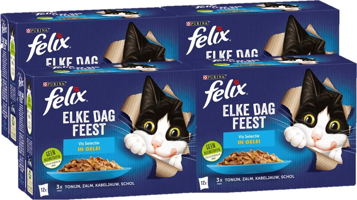 Felix Elke Dag Feest Vis Selectie In Gelei – Katten Natvoer – 4x12x85 Gr
