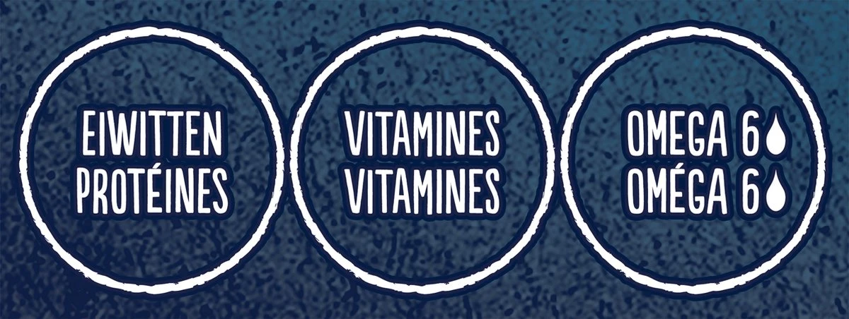 | Analytische bestandsdelen | Analytische bestanddelen::<br />Eiwit: 35,0%,<br />Vetgehalte: 19,5%,<br />Ruwe as: 8,5%,<br />Ruwe celstof: 0,5%,<br />Omega 6-vetzuren: 2,6%.<br />Analytische bestanddelen::<br />Eiwit: 35,0%,<br />Vetgehalte: 19,5%,<br />Ruwe as: 8,5%,<br />Ruwe celstof: 0,5%,<br />Omega 6-vetzuren: 2,6%. |