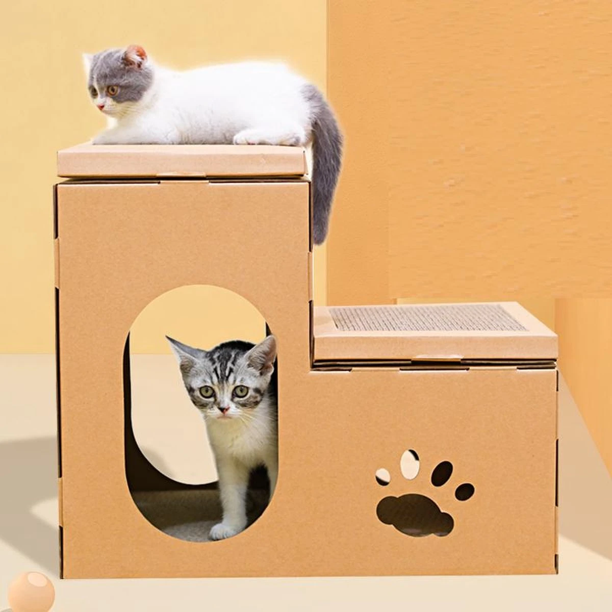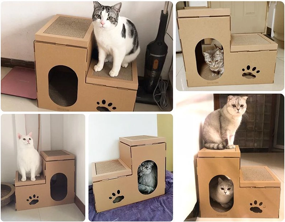 Dit leuke kattenhuis is gemaakt van karton. Het kattenhuis is ideaal voor katten om in te slapen of om op te liggen. Er kunnen 2-3 katten het huis tegelijkertijd gebruiken. Hiermee creëer je een ultieme slaap/chill plek voor je kat.