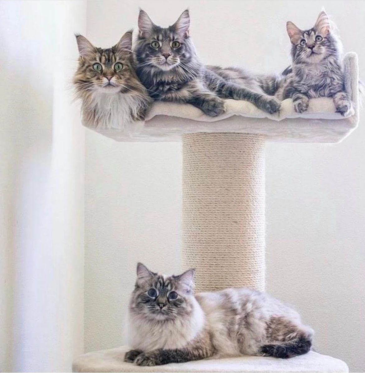 Ideale krabpaal voor zware katten als Maine coon of Noorse Boskat of voor de klant die echt een stevige krabpaal wenst. De krabpaal Maine coon Lounge heeft een handige grote opstap ( Is draaibaar) en daarboven een enorme ligplek van 62×42 cm met een 15cm hoge opstaande rand. Hierop ligt een 5 cm dik en heerlijk zacht kussen, welke uitneembaar is. Door zijn hoogte van 120 cm een ideale krabpaal voor in uw woonkamer.