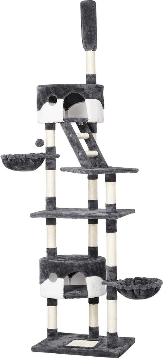 Krabpaal XXL, Klimboom Voor Katten – Plafondhoogte, Verstelbaar Van 228-255 Cm, Grijs-wit HM-YAHEE-610837