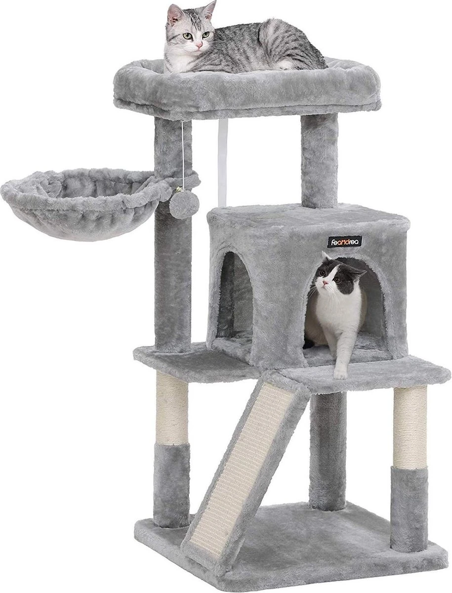 â–¶ Pure luxe voor alle katten: Voor de kat is deze krabpaal een echte all-in-one, een waar luxeresort. De verschillende niveaus maken van deze kattenboom een heuse ontdekkingstocht. Verder is de krabpaal ook een plaats om energie kwijt te kunnen. De katjes kunnen krabben, springen en klauteren. Verschillende zachte mandjes liggen bovendien op uw kat of katten te wachten!