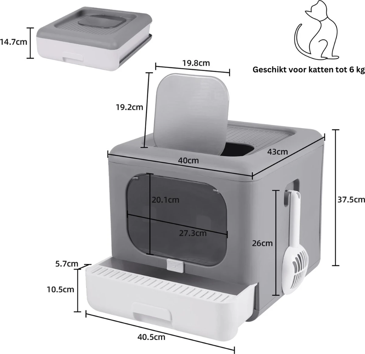 De kattenbak is binnen twee minuten te monteren, je hoeft alleen de doos uit te pakken en alles in elkaar te klikken en de bak is klaar voor gebruik!