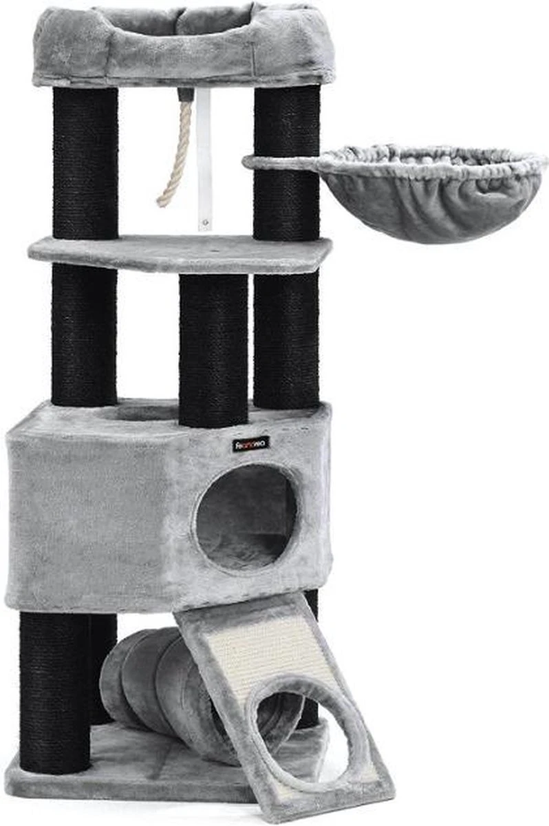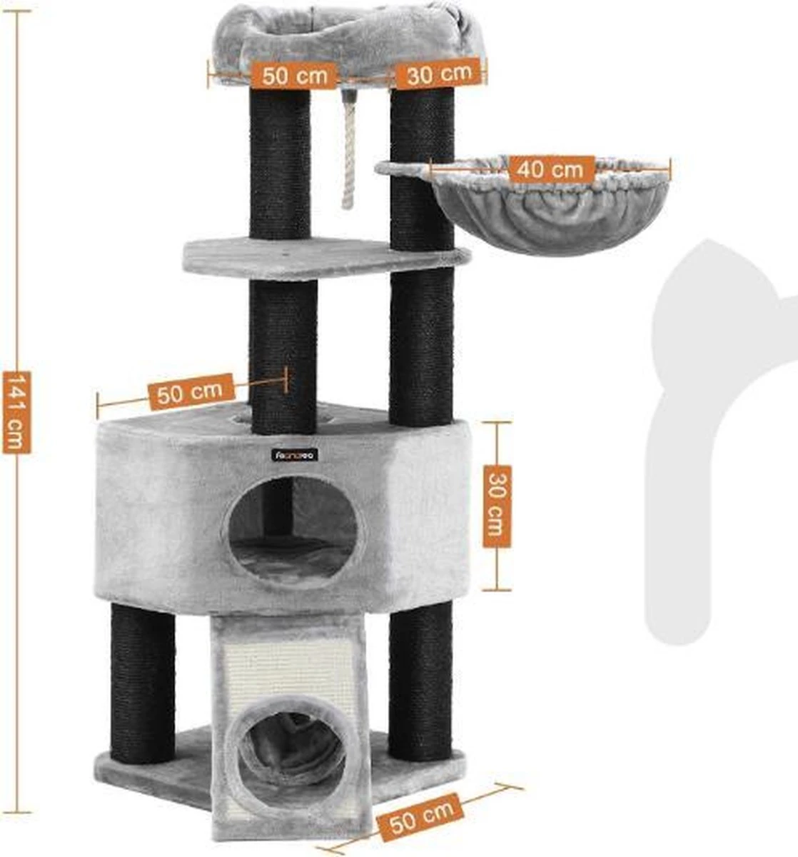 Of je nu een gespierde Ragdoll-kat of een grote Savannah-kat in je huis rondsnuffelt, je wilt het veilig spelen met je kleine viervoeter. Daarom is deze kattenboom uitgerust met een dubbellaagse bodemplaat en een anti-kipper. Zelfs dikker dan voorheen, zorgen de sisalpalen ook voor maximale stabiliteit.