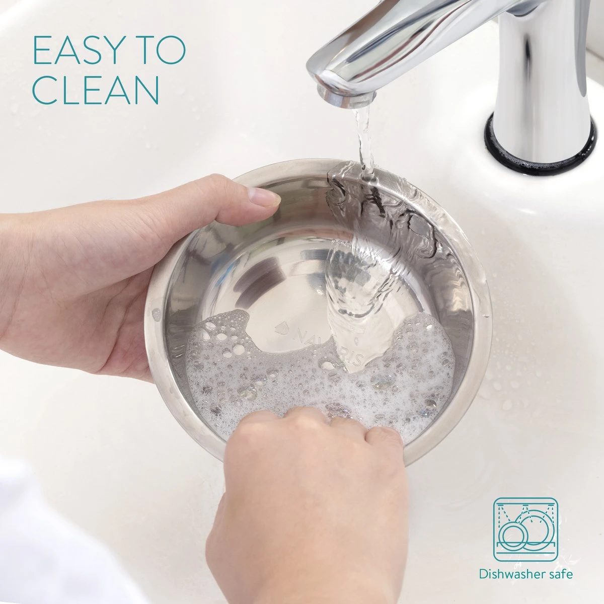 - Je kunt de bakjes gewoon mee afwassen met de hand of in de vaatwasser en de standaard kun je afvegen met een vochtige doek. Laat hem daarna wel goed drogen.