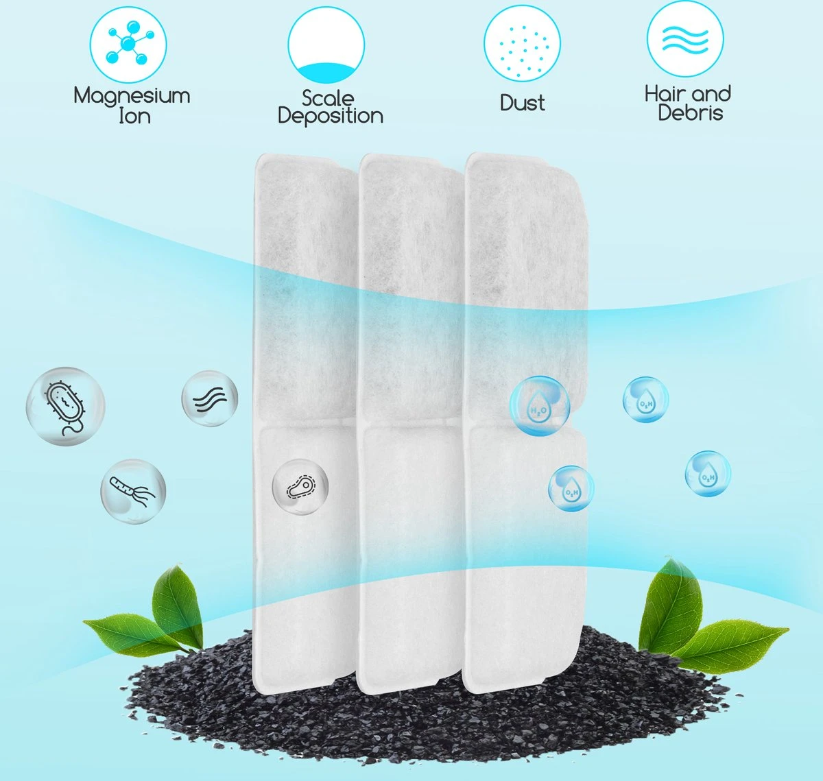Dit waterfontein leveren wij inclusief 2 koolstoffilters die het water zachter en schoner maken. De sterkte van de waterstraal is regelbaar en terug te brengen naar druppel stand.