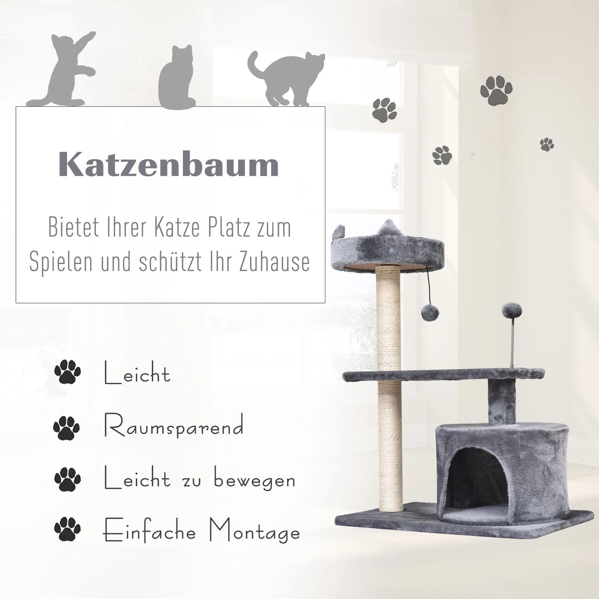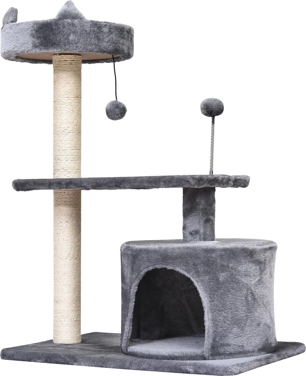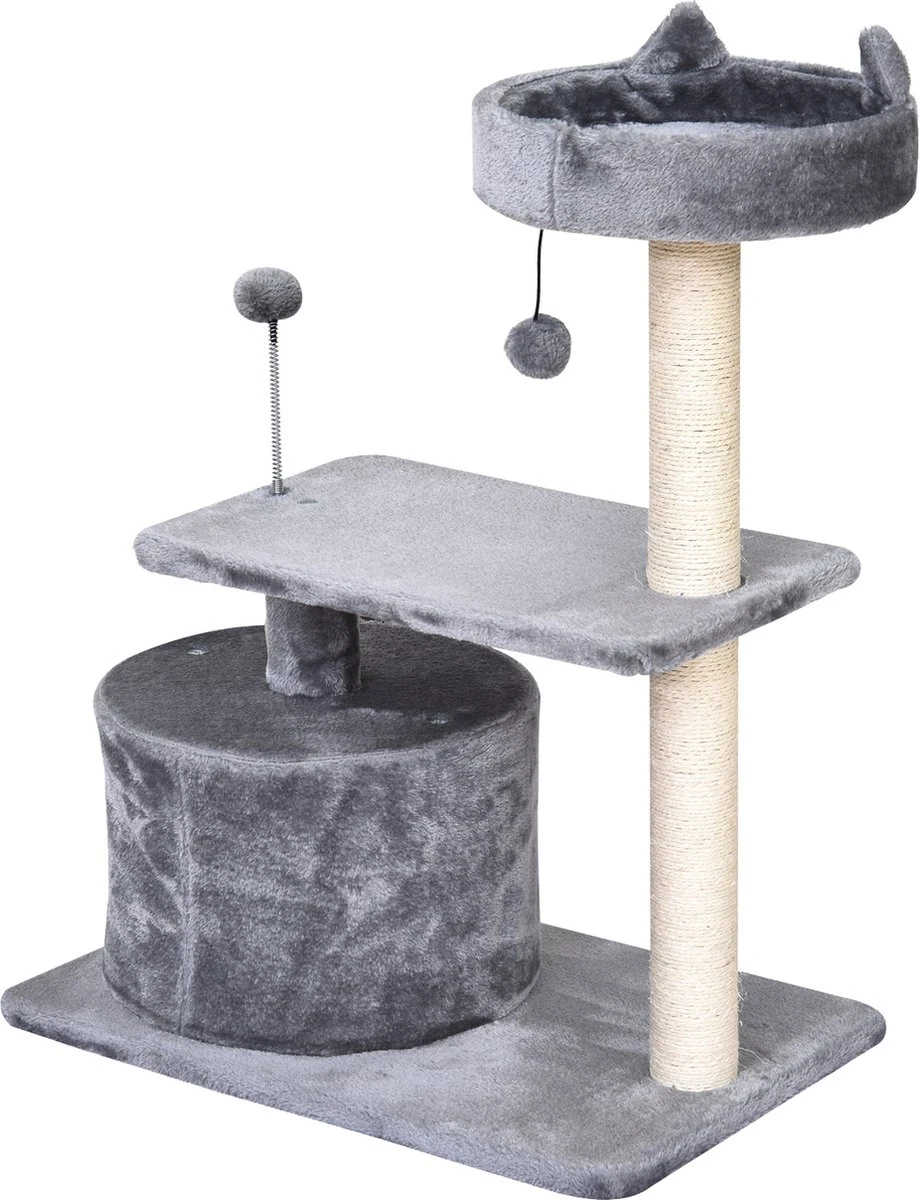 PawHut Kattenboom 3 Verdiepingen Krabpaal Kattengrot Met Sisal Palen Krabplank Pluche D30-258