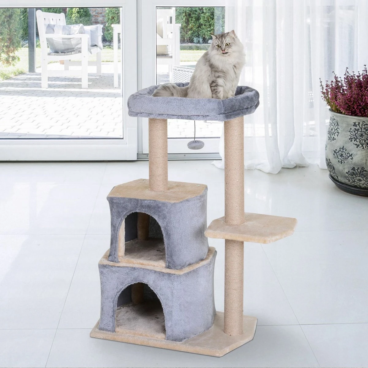 PawHut Krabpaal Kattenboom Met Grot Klimboom Kattenhuis Sisal Paal Sisal Grijs D30-218