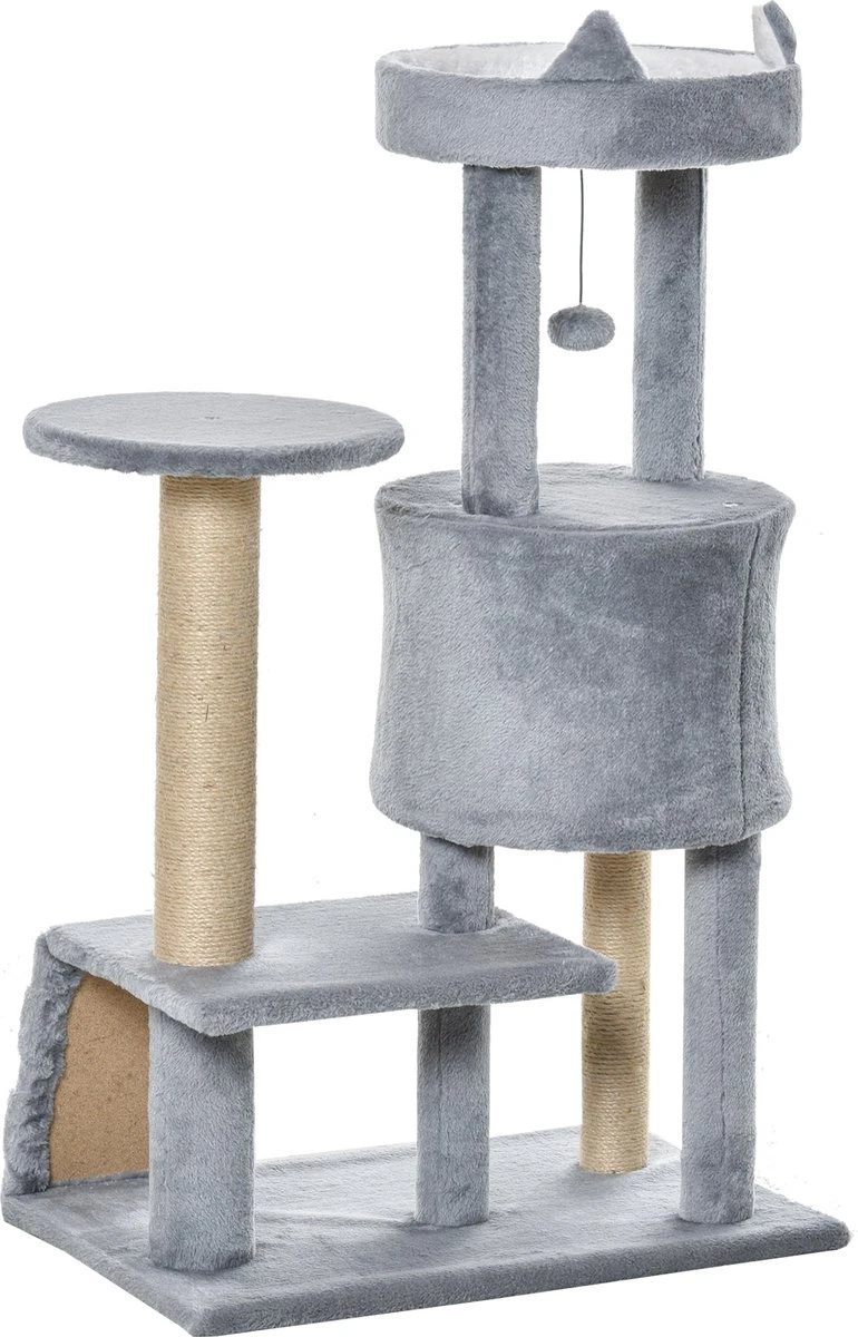 PawHut Krabpaal Kattenboom Met Kattengrot Trap Spaanplaat Jute Grijs D30-360