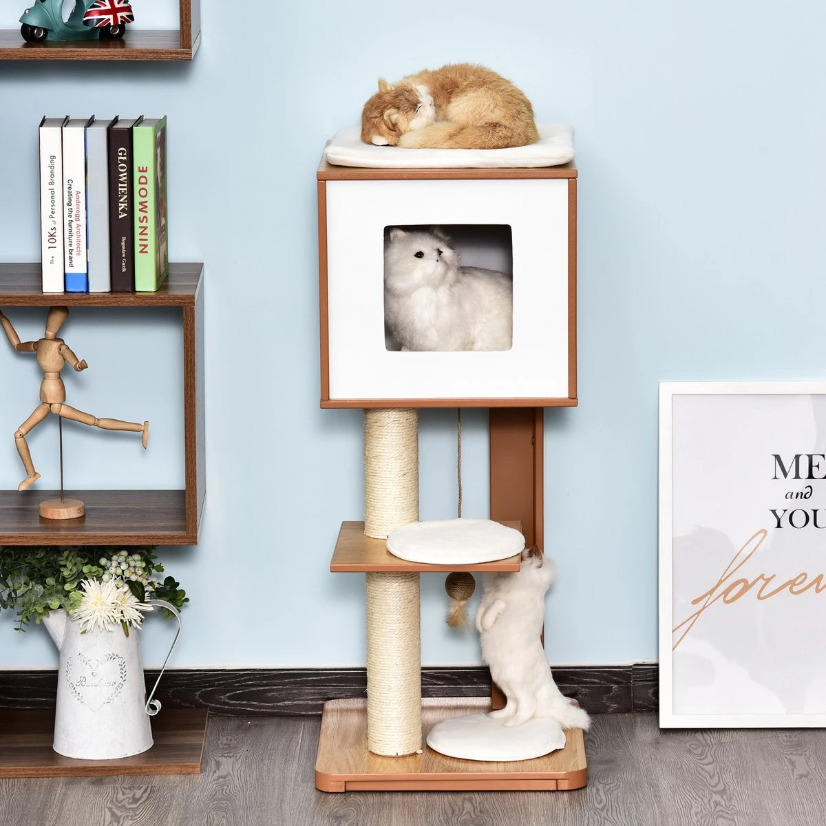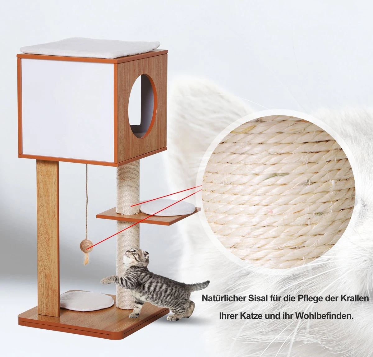PawHut Krabpaal Met Grot & Sisal Paal Kattenboom Kattenmeubel 4 Kussens MDF D30-206V01