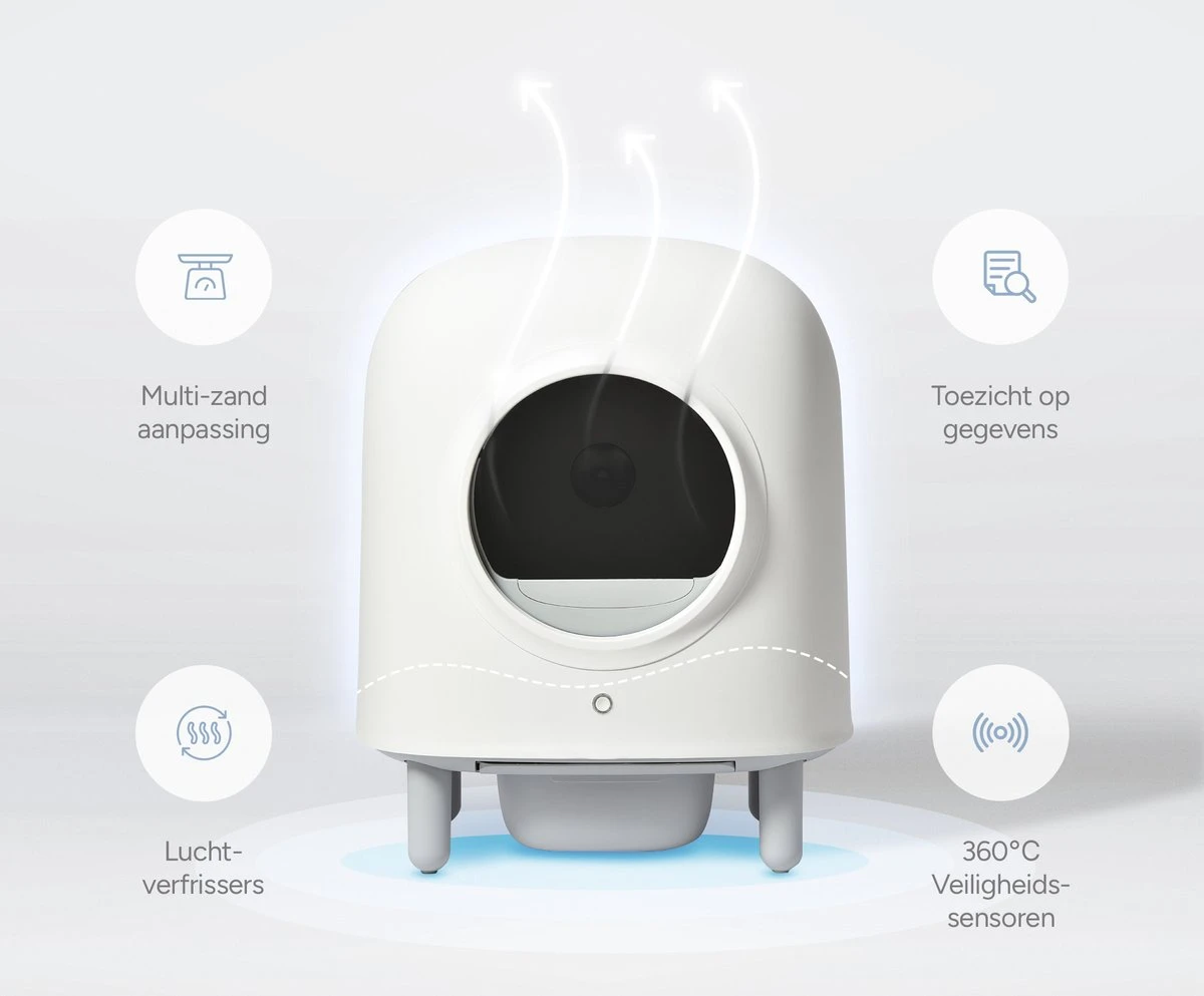 Een fantastische functie, het zelfreigningssysteem! Zodra jouw kat de Cube verlaat, start het schoonmaken! De infraroodsensoren, en de nieuwste microgolfradar zorgen ervoor dat jij je nooit meer hoeft zorgen te maken over het verschonen van een kattenbak. De Petreeâ„¢ Cube Kattenbak beschikt over een uitgebreide app & Wi-FI, waardoor je ook zelf het systeem kan bedienen. Wordt op de hoogte gebracht van een gebrek aan kattenbakvulling, of een te volle afvallade. Daarnaast kan je de activiteiten van je kat controleren. Hoe vaak maakt hij gebruik van de Cube, belangrijke informatie voor de gezondheid van jouw kat! De app is compitabel met iOS van Apple & Android.