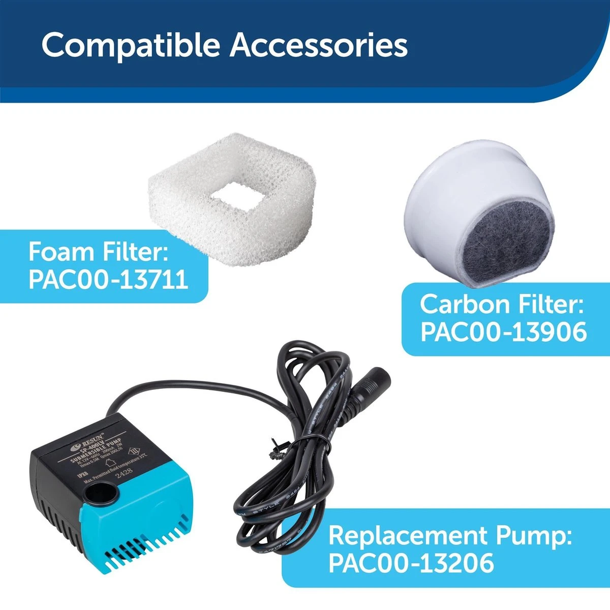 PetSafe Streamside Ceramic Pet Fountain is een ‘borrelende’ keramische drinkfontein. Deze stijlvolle waterfontein met een inhoud van 1,8 liter water is perfect voor katten en kleine honden. Doordat het water zachtjes over de keramische toren borrelt, is deze fontein ook erg geschikt voor schuwere huisdieren. De fontein maakt gebruik van een pomp, koolstoffilter en schuimfilter die samenwerken om dierenharen, speeksel en slechte smaken uit het water te verwijderen, zodat ze altijd schoon water te drinken hebben.