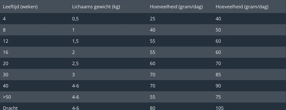 | Leeftijd dier | Kitten (tot 1 jaar) |
