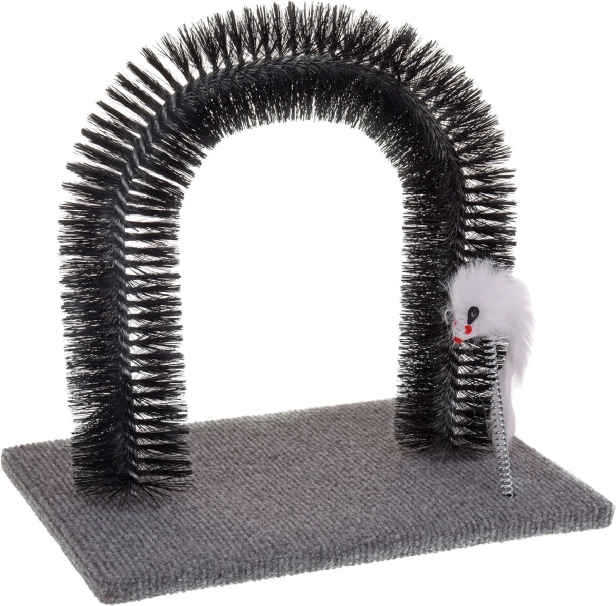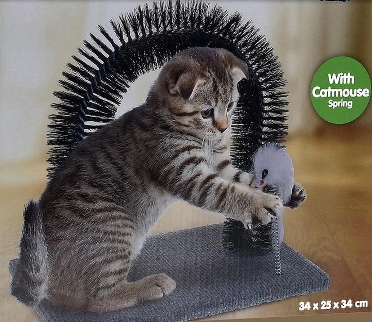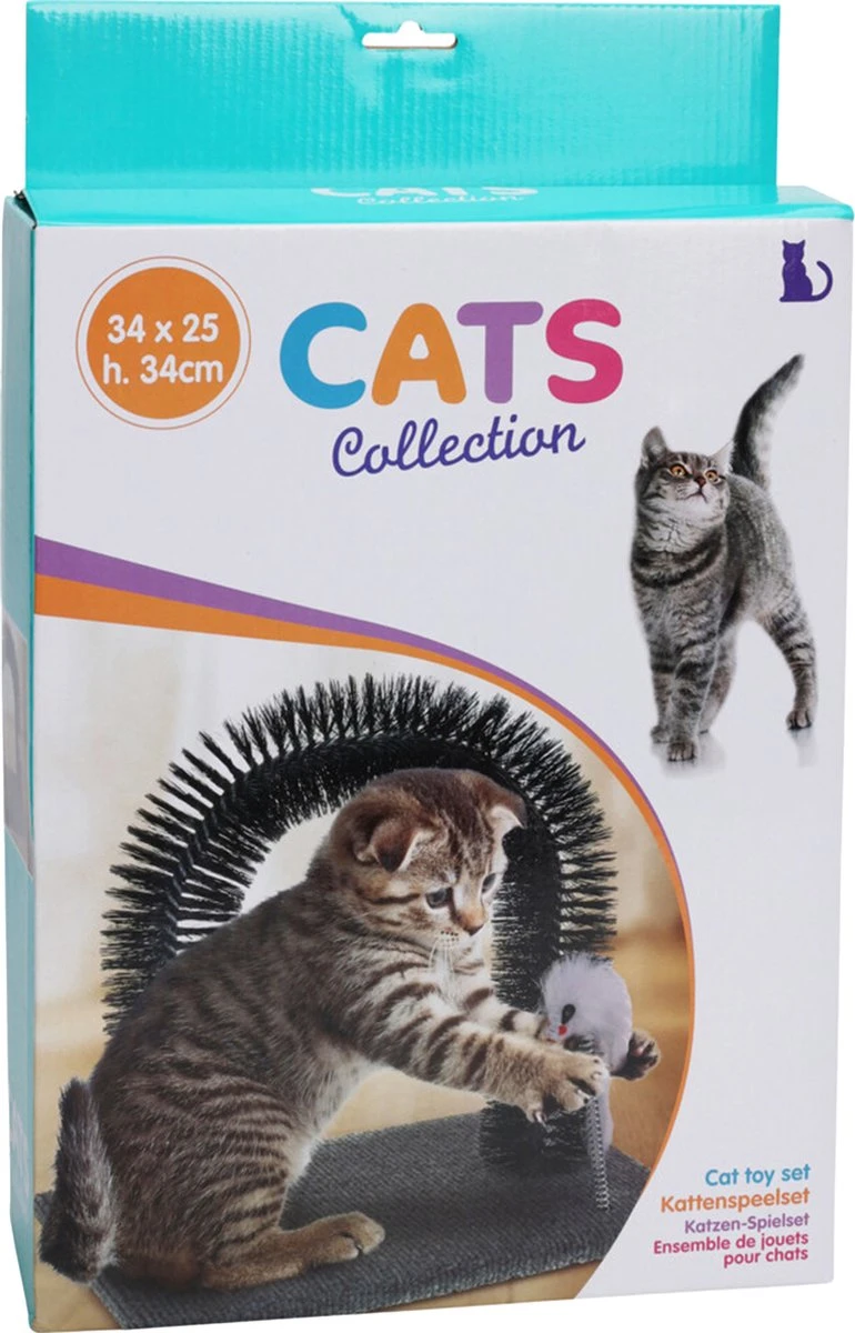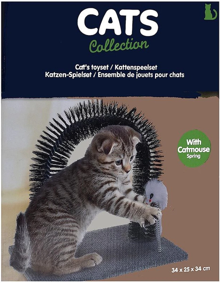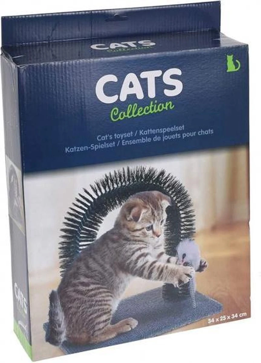 Deze leuke Speelplaats Kat van 34 x 25 x 34 cm biedt jouw kat een veelzijdige speelplek met een krabplaats als bodem, speelmuisje op veer en borstelboog. Jouw kat kan op deze speelplaats dus én zijn nagels slijpen, én van vervelende kriebel afkomen en spelen met zijn muisje. Multifunctioneel en goed voor uren speelplezier. Het muisje staat op een veer om het nog aantrekkelijker te maken en aan de bodemplaat kan jouw kat lekker krabbelen. Zo heeft jouw kat plezier en blijft jouw meubulair heel!