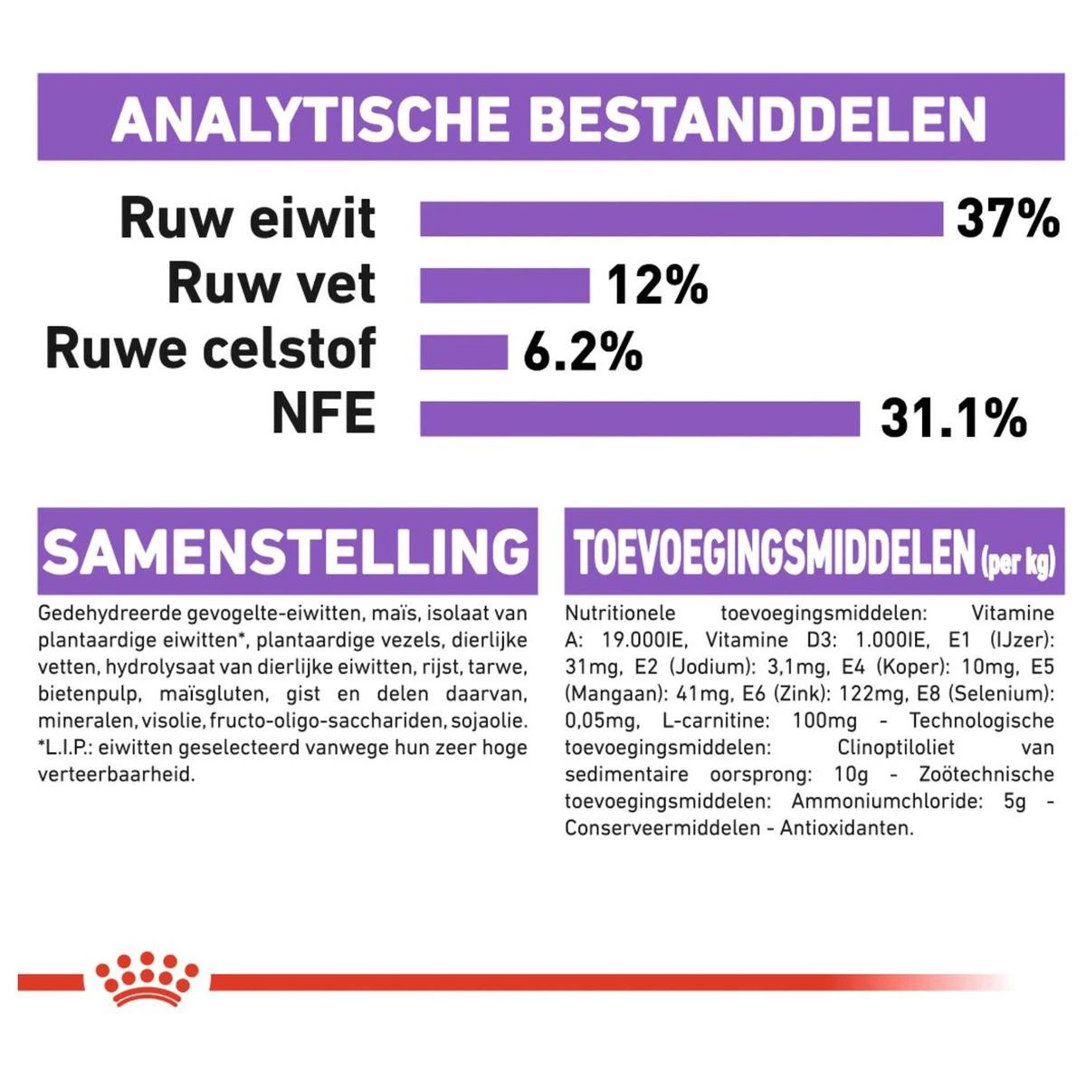 Royal Canin is toegewijd aan het leveren van voedingsoplossingen voor de behoeften van je huisdier. Alle producten ondergaan een uitgebreid kwaliteitscontroleproces om de optimale kwaliteit van de voeding te garanderen en om te voldoen aan de specifieke voedingsbehoeften en levensstijl van je kat. Als je kat Royal Canin Sterilised 37 eet, krijgt ze een complete en uitgebalanceerde voeding voorgeschoteld.