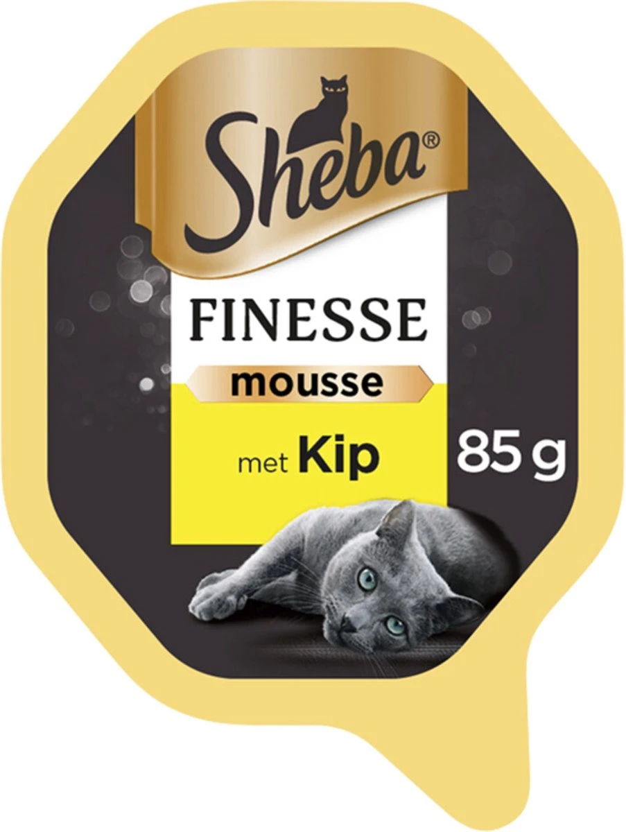 Sheba Finesse Kip is een heerlijke, zachte smeltende mousse met kip en geselecteerde ingrediënten voor elke dag. Het heeft een fijne textuur die makkelijk verteerbaar is, smakelijk en verfijnd.
