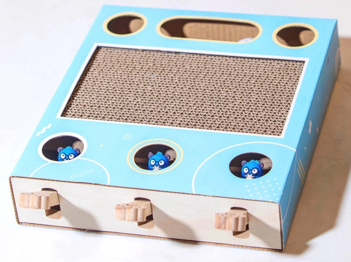 Dit design heeft 3 verschillende mollen die omhoog kunnen komen. Door dit uitgebreide design blijft het spelletje fris en nieuw. Uw kat zal nooit precies weten welke mol omhoog zal komen omdat u optimaal af kan wisselen. Naast de 3 mollen bevat het design een gleuf met speelbal en een vlak waaraan de kat zijn/haar nagels kan krabben.