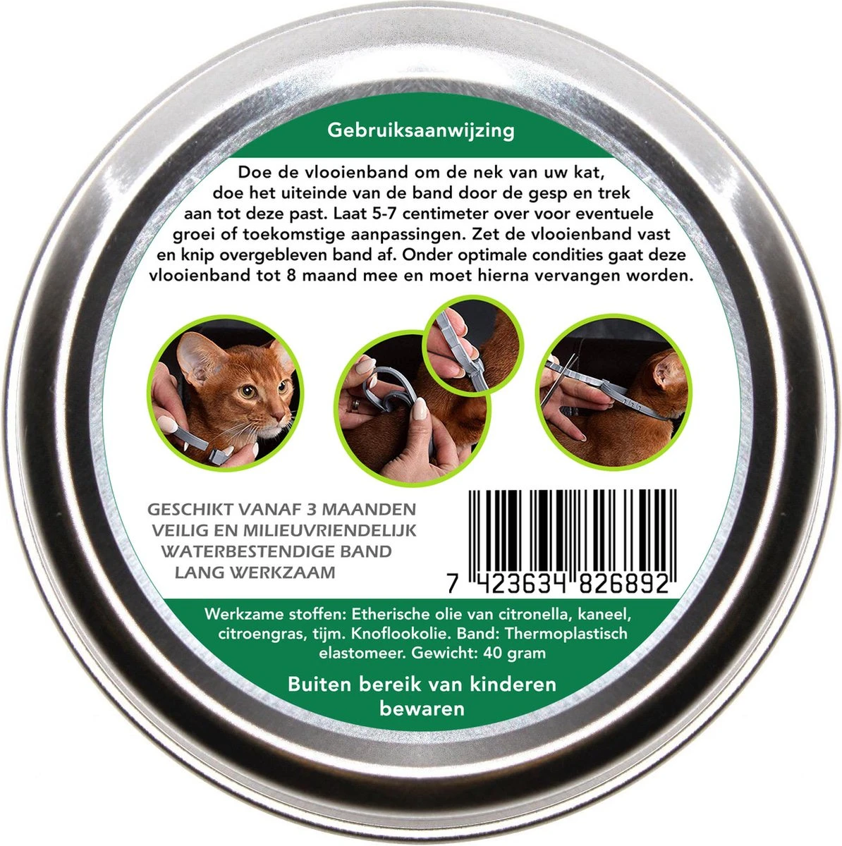Deze nieuwste vlooien- en tekenband begint te werken vanaf het moment dat u de band aanbrengt. bovendien beschermt deze band tot 8 maanden. Deze band is geschikt voor katten die erg gevoelig zijn voor andere middelen of een vlooienallergie hebben. Ook is het een logisch antwoord voor huishoudens die een natuurlijke oplossing zoeken.