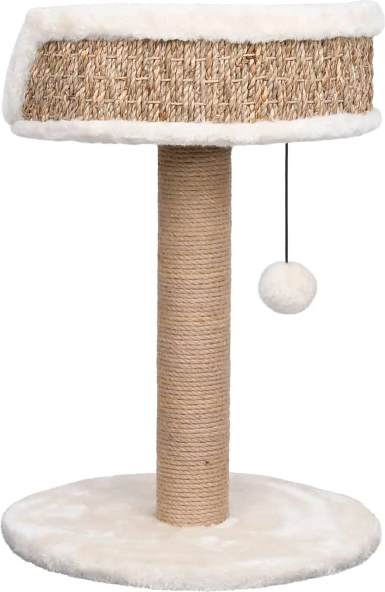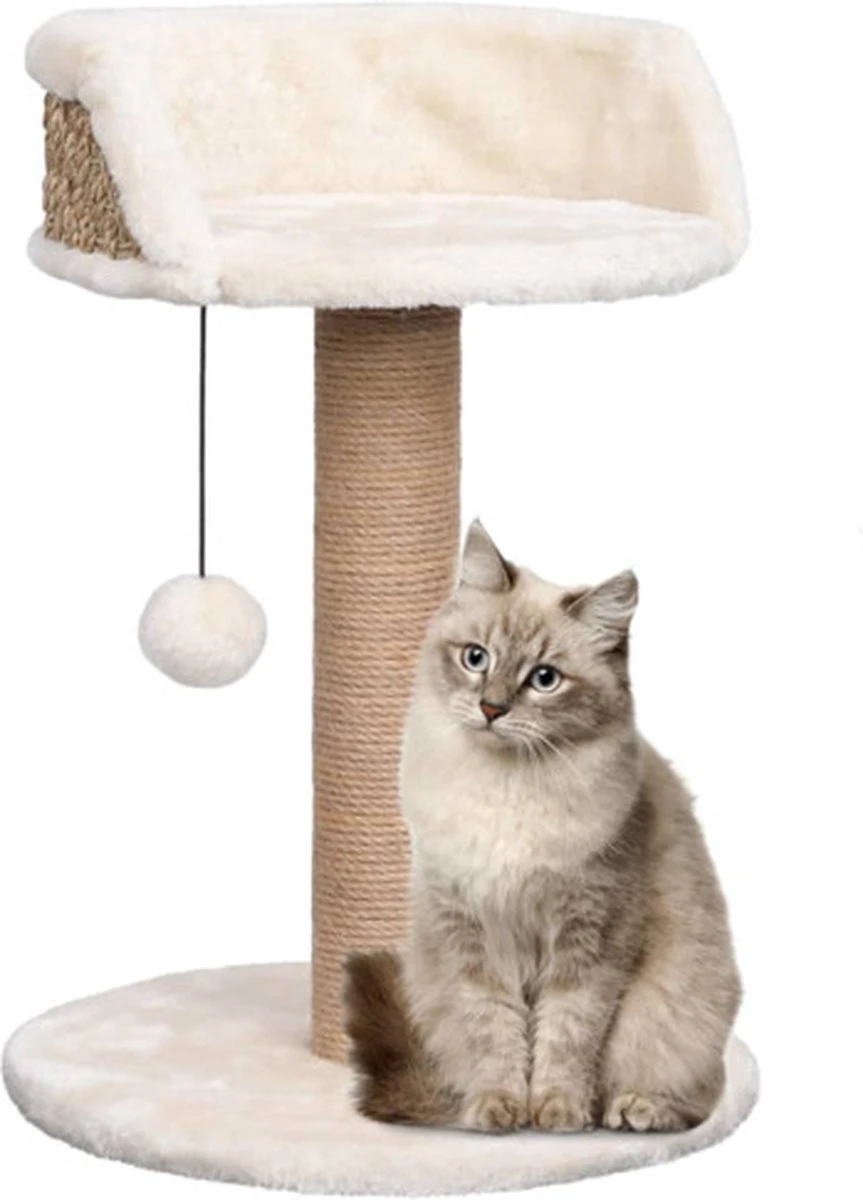Deze krabpaal is ideaal voor je kleine vriendjes om zich uit te strekken en te spelen, vooral in de wintermaanden wanneer ze binnenblijven. De krabpalen zijn omwikkeld met zeegras, wat voor je kattenvriendjes hoogst comfortabel is en geschikt is om hun nagels aan te scherpen. Daarnaast heeft onze kattenboom een hangspeeltje en een bovenmand om je kat bezig te houden. De basis is stevig en stabiel.